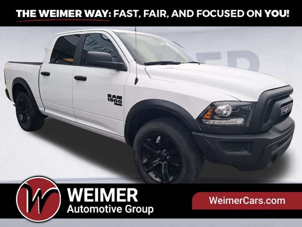 1500 Classic Warlock, 4D Crew Cab, 8-Speed Automatic, 4WD, Bright White Clearcoat, 4-Wheel Disc Brakes, 40/20/40 Split Bench Seat, 4x4 Flat Black Badge, 6 Speakers, ABS brakes, Air Conditioning, AM/FM radio: SiriusXM, Audio Input Jack for Mobile Devices, B-Pillar Black Out, Bi-Function Halogen Projector Headlamps, Black Exterior Truck Badging, Black Grille w/RAM Lettering, Black Headlamp Filler Panel, Black Powder Coated Front Bumper, Black Powder Coated Rear Bumper, Black RAM Head Tailgate Badge, Black Wheel Flares, Brake assist, Cloth 40/20/40 Bench Seat, Delay-off headlights, Dual front impact airbags, Dual front side impact airbags, Electronic Stability Control, Front anti-roll bar, Front Armrest w/3 Cupholders, Front Center Armrest w/Storage, Front wheel independent suspension, Front Wheel Well Liners, Fully automatic headlights, GPS Antenna Input, Illuminated entry, Integrated Voice Command w/Bluetooth, Low tire pressure warning, Manufacturer's Statement of Origin, Occupant sensing airbag, Outside temperature display, Overhead airbag, Overhead console, Panic alarm, ParkSense Rear Park Assist System, ParkView Rear Back-Up Camera, Passenger door bin, Passenger vanity mirror, Power steering, Power windows, Quick Order Package 29F Warlock, Radio data system, Radio: Uconnect 3 w/5" Display, Raised Ride Height, Rear anti-roll bar, Rear Extra HD Shock Absorbers, Rear seat center armrest, Remote keyless entry, Remote USB Port, Remote USB Port - Charge Only, Semi-Gloss Black Hub, Speed control, Sport Tail Lamps, Storage Tray, Tachometer, Tilt steering wheel, Tip Start, Traction control, Trip computer, Voltmeter, Warlock, Warlock Interior Accents, Wheels: 20" x 9" High Gloss Black Aluminum.