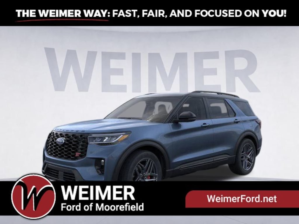 Vapor Blue 2025 Ford Explorer ST 4WD 10-Speed Automatic 3.0L EcoBoost V6 4WD. Price includes: $1500 - Bonus Customer Cash. Exp. 02/02/2026