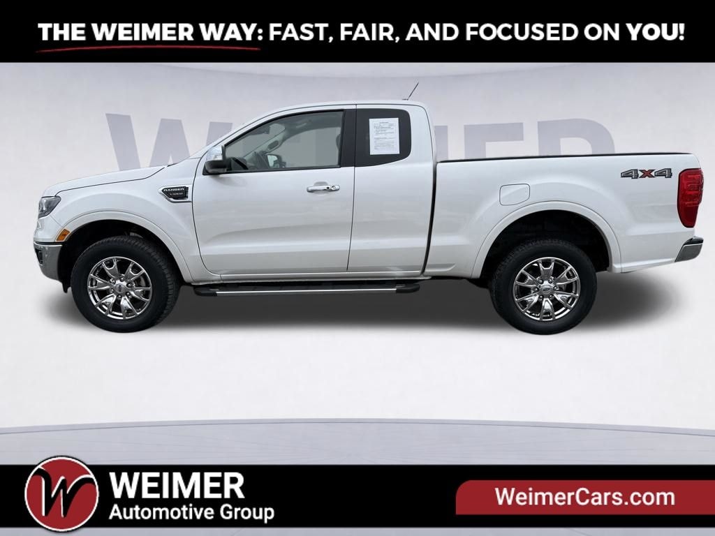 White Platinum 2019 Ford Ranger Lariat 4WD 10-Speed Automatic EcoBoost 2.3L I4 GTDi DOHC Turbocharged VCT Local Trade, One Owner, 4WD, 12V Power Plug, Adaptive Cruise Control, AppLink/Apple CarPlay and Android Auto, Bed Utility Package, Body-Color Wheel-Lip Molding, Chrome Appearance Package, Chrome Door & Tailgate Handles, Chrome Exhaust Tip, Chrome Front & Rear Bumpers, Chrome Mirror Caps, Chrome Tow Hooks, Equipment Group 501A Mid, Front Heated Leather-Trimmed Bucket Seats, Heated front seats, Navigation, Plastic Drop-In Bedliner, Power driver seat, Radio: AM/FM Stereo w/6 Speakers, Rain-Sensing Wipers, Remote Start, SiriusXM Satellite Radio, Steering wheel mounted audio controls, SYNC 3, Technology Package, Unique Chrome Grille, Wheels: 18" Chrome-Like PVD, Windshield Wiper De-Icer.